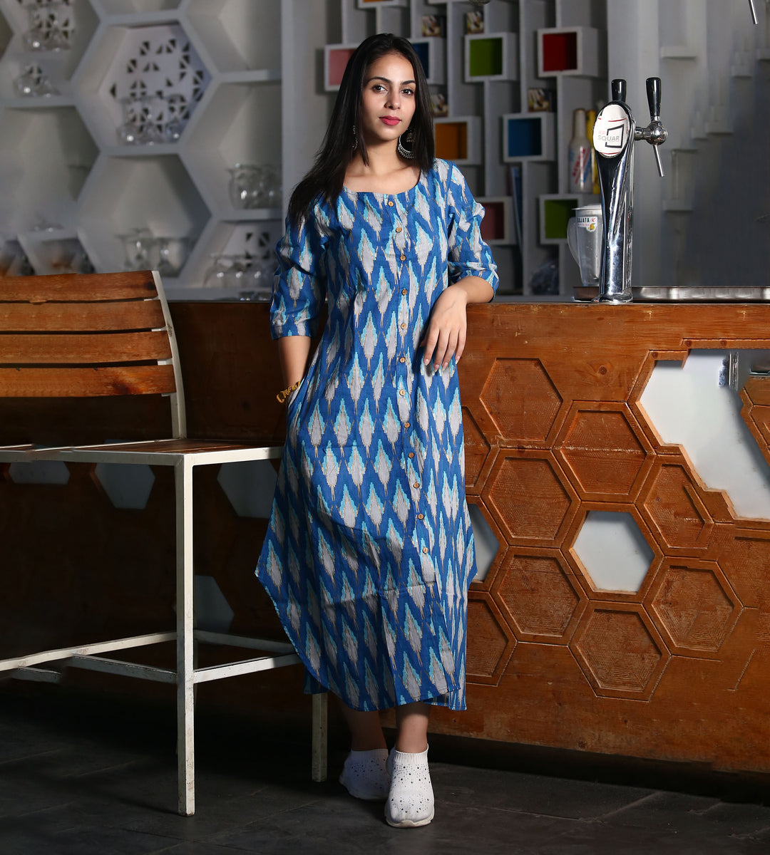 Indigo ZigZag Hand Block Print 3in1 Dress