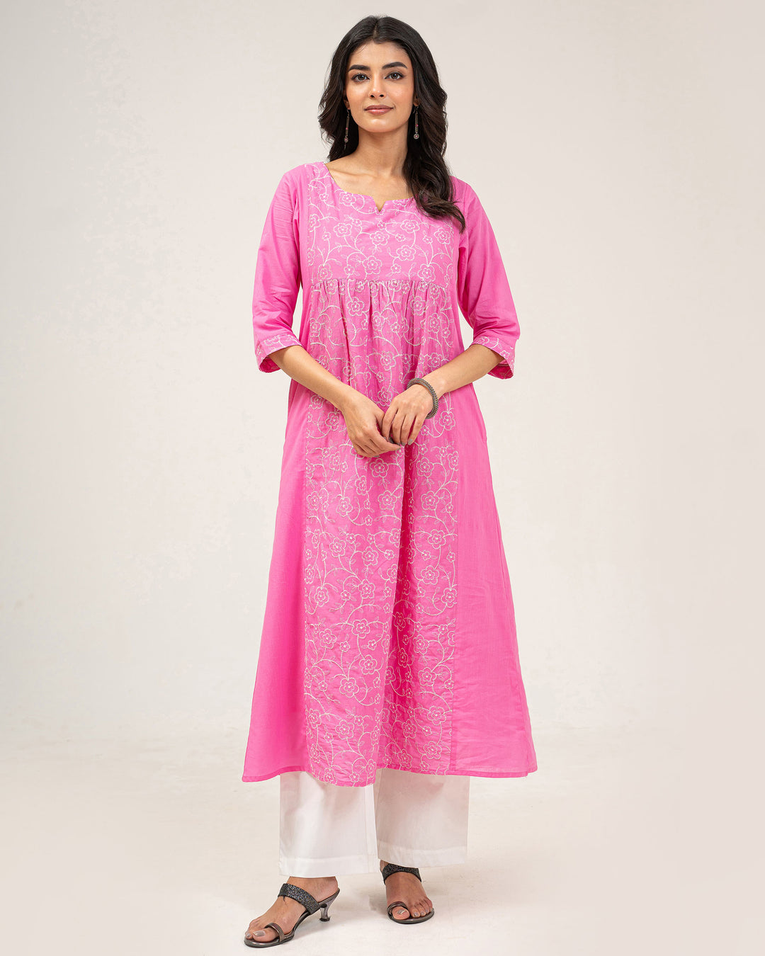Pink Hues Embroidered Pure Cotton Kurta