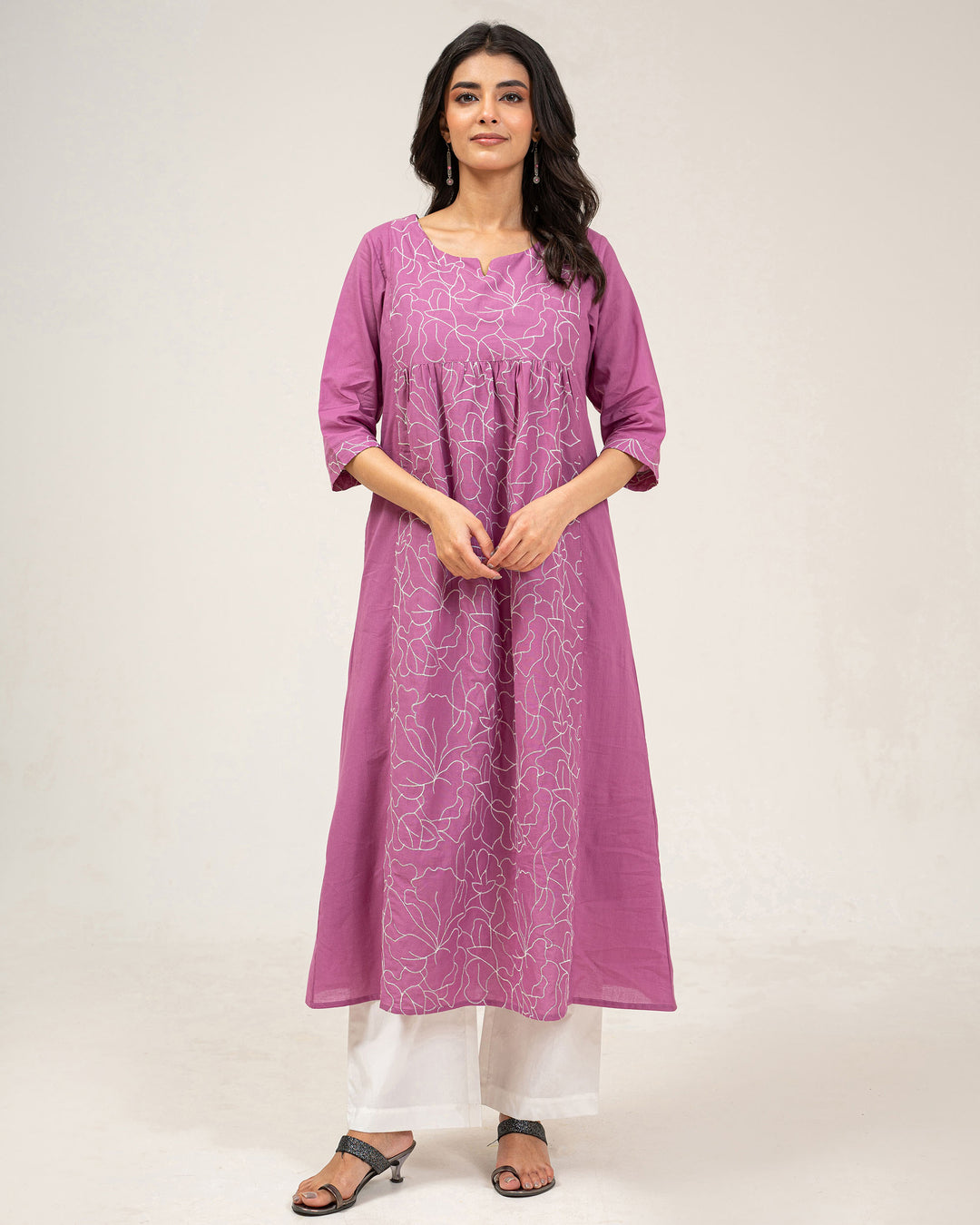 Lilac Embroidered Pure Cotton Kurta