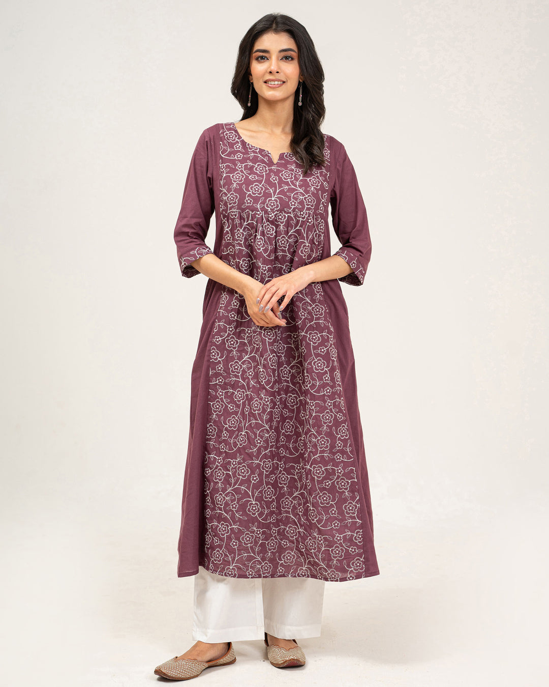 Mauve Embroidered Pure Cotton Kurta