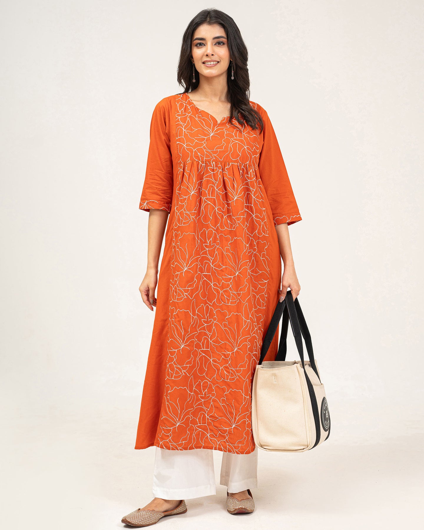 Orange Embroidered Pure Cotton Kurta