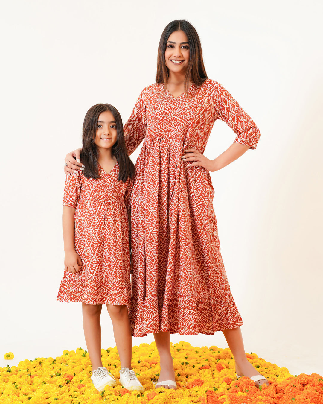 Rust Drape Mom and Daughter Dresses