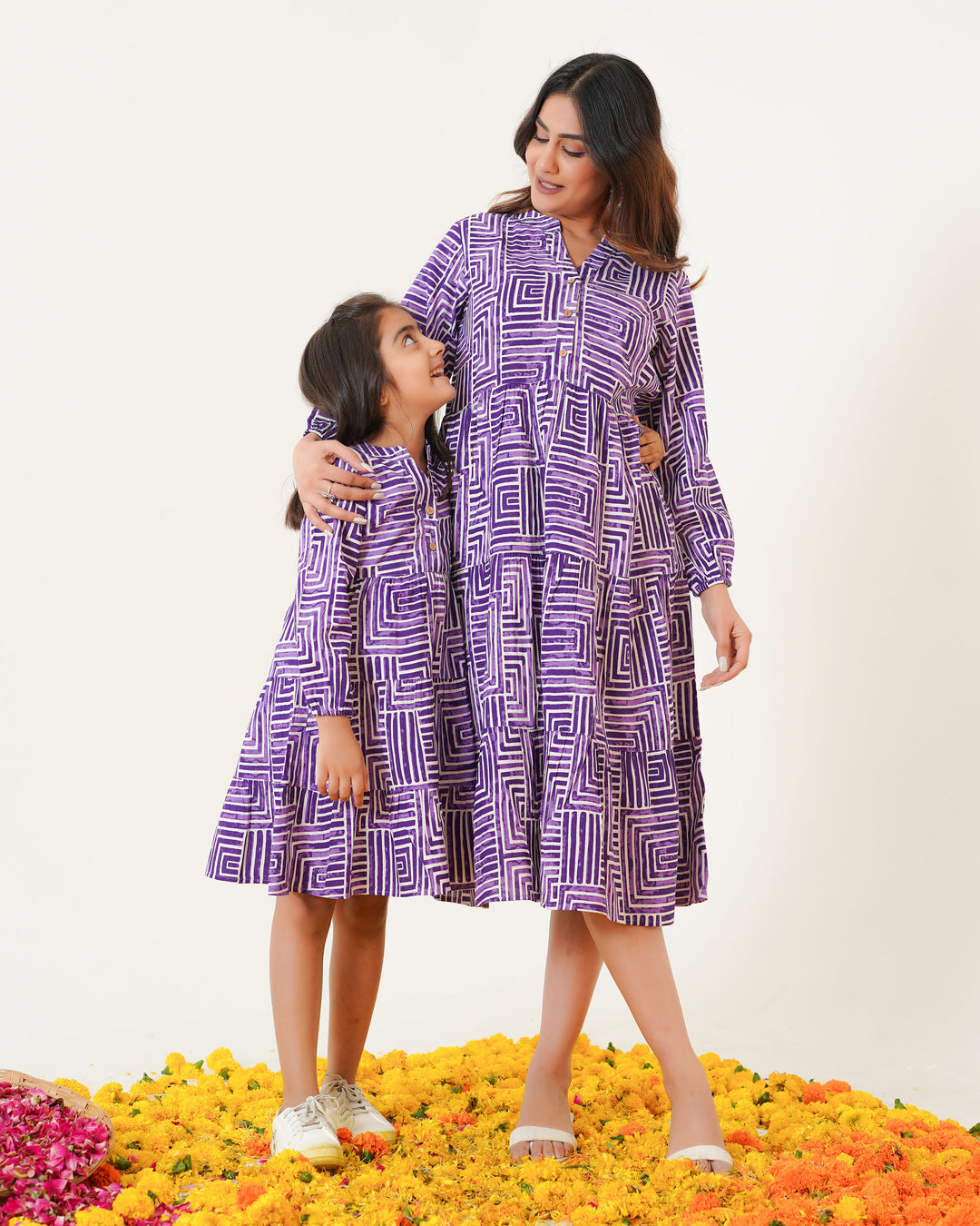 Purple Drift Mom and Daughter Cotton Dresses