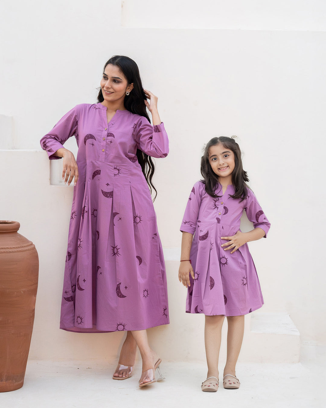 Lilac Eclipse Mom and Daughter Cotton Dresses