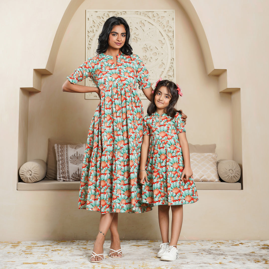 'Green Lush' Mom and Daughter Cotton Dresses