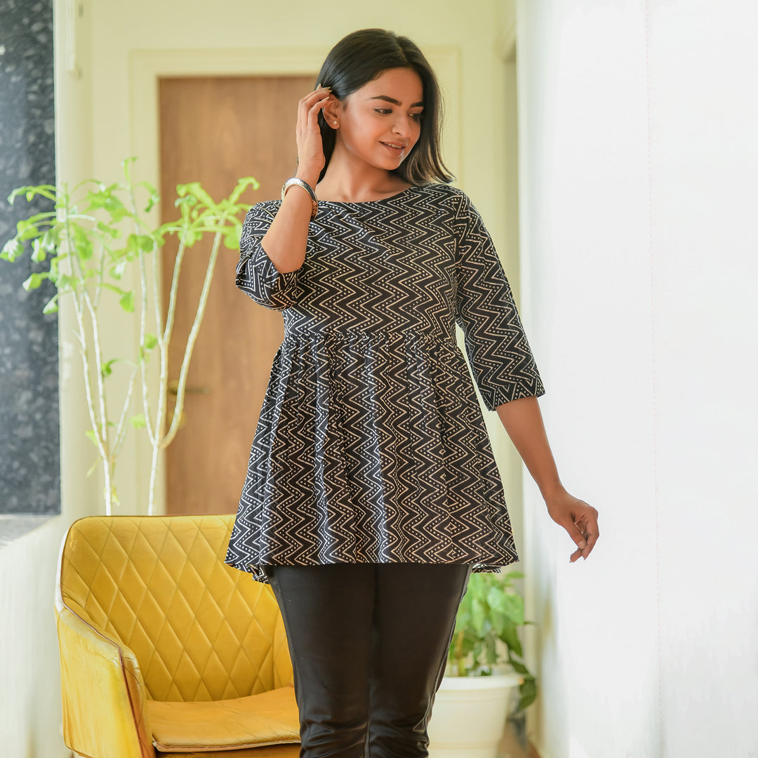 Black Zigzag Printed Cotton Top