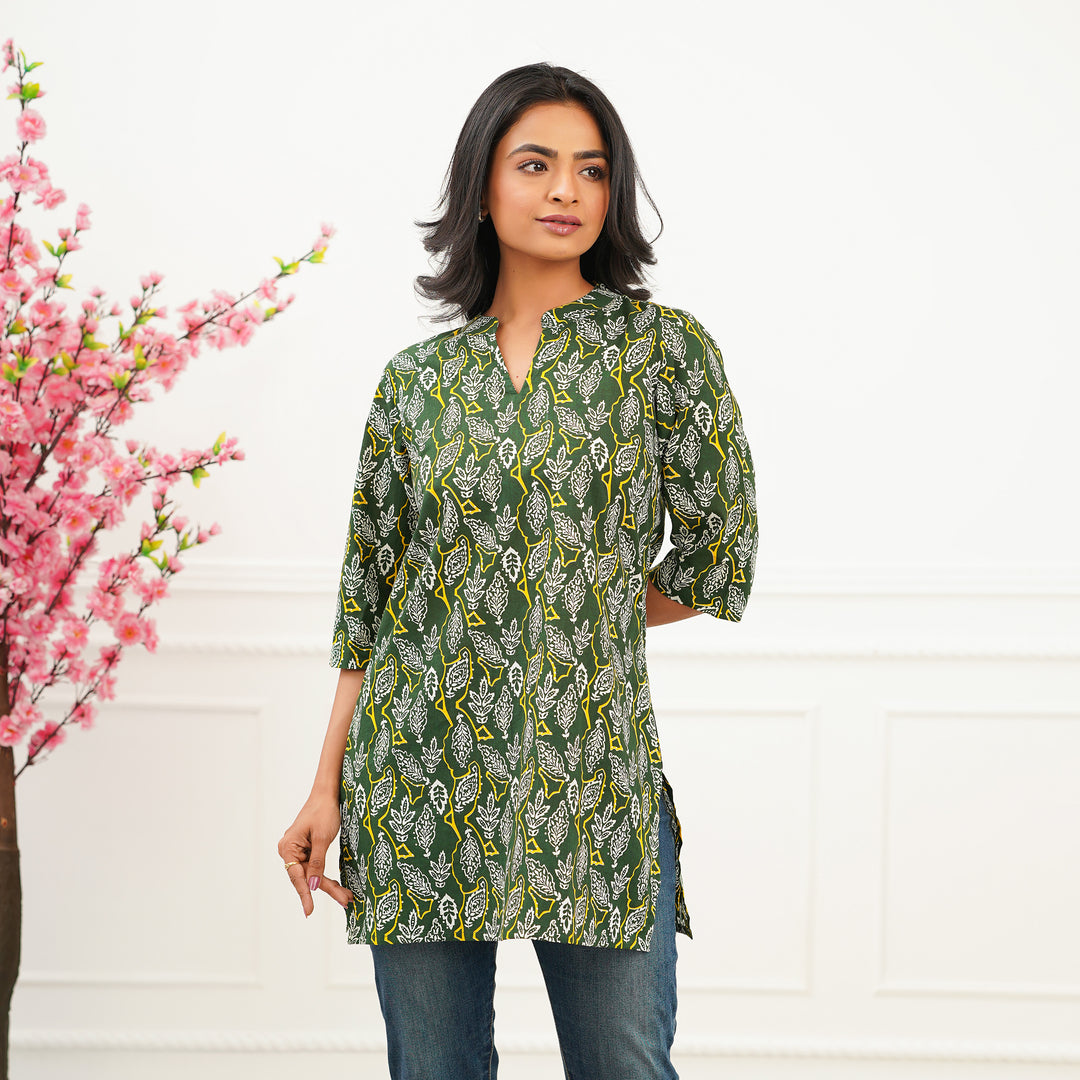 'Green Oasis' Cotton Short Kurti