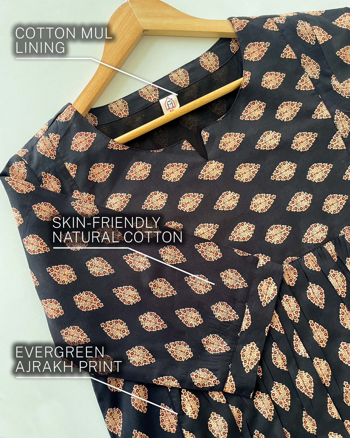 Black 'Ajrakh Ease' Pure Cotton Kurta