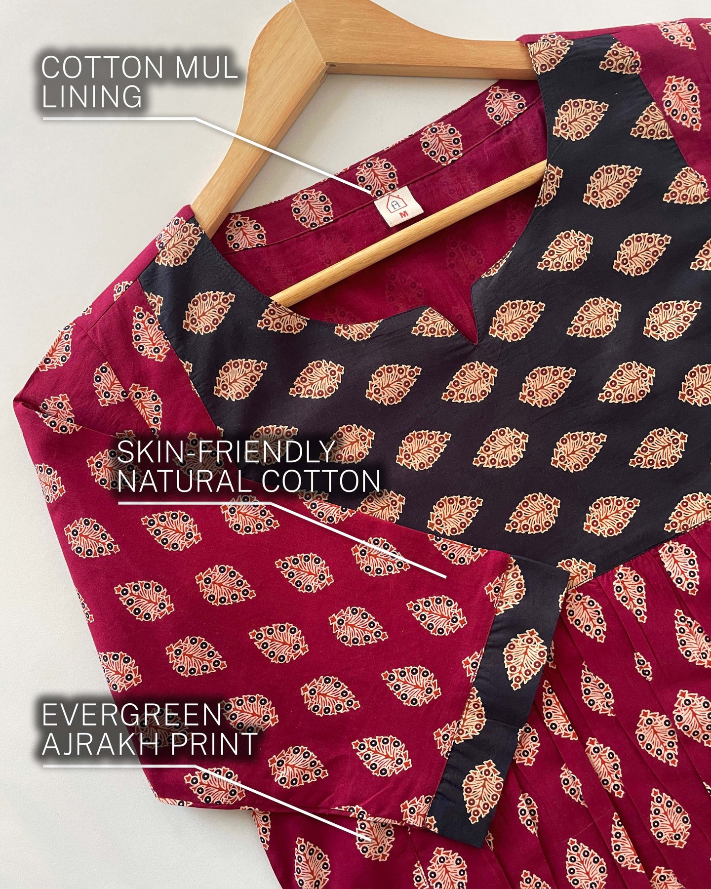 Maroon 'Ajrakh Ease' Pure Cotton Kurta
